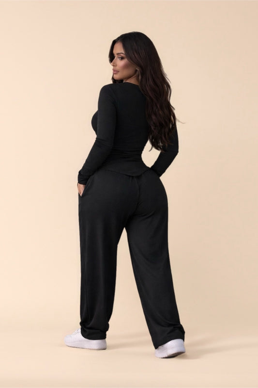 Ensemble Deux Pièces – Haut Gainant (version ouvert) & Pantalon Fluide
