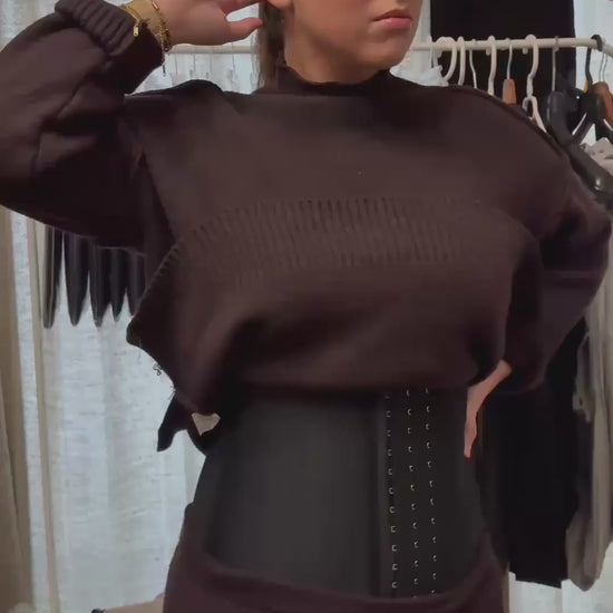Aucuns plis lors de vos mouvement, le corset en latex ne bouge pas même en position assise grâce à son elasticité.
