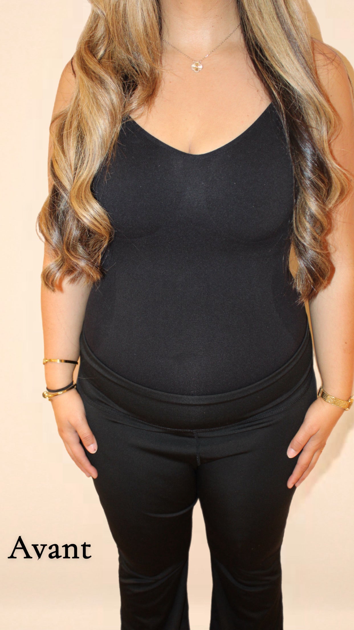 - Maintien total du dos : à l’arrière, la gaine monte jusqu’en haut du dos pour camoufler tous les petits bourrelets et lisser la silhouette, même sous un haut ajusté.
